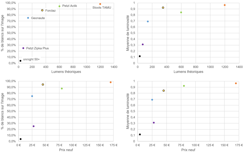 Ici on ne mesure que la luminosité. N'est pas mesuré la durabilité et résistance, la durée des batteries ou bien la qualité de finition.